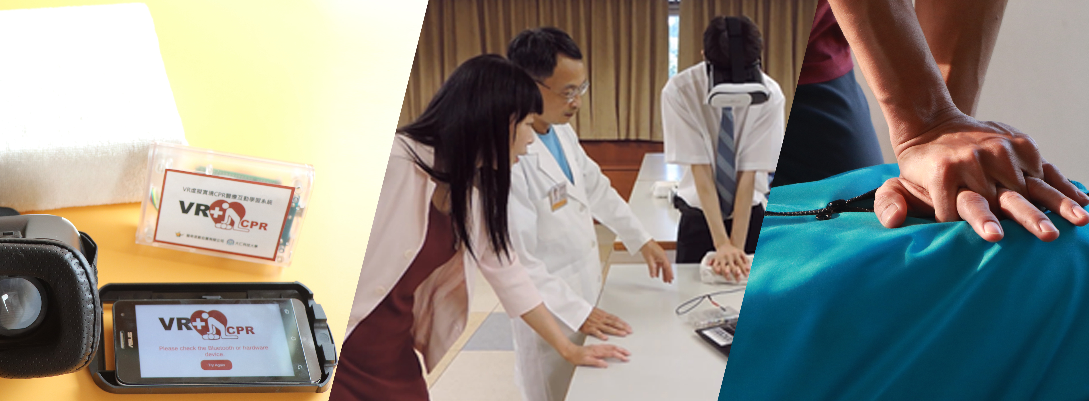 「VR虛擬實境CPR醫療體感互動學習系統」是透過VR App結合壓力感測模組,以VR沉浸式學習引導搶救休克患者的CPR壓胸動作,透過壓力感測模組模擬CPR壓胸操作,並經由藍芽訊號即時傳輸至VR App呈現按壓深度與頻率之正確性提示沉浸式互動學習,有助於對休克患者進行CPR之自主學習救護體驗。