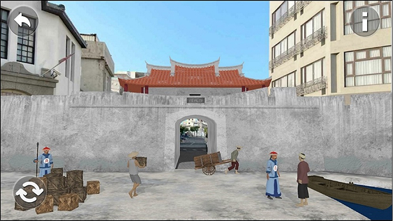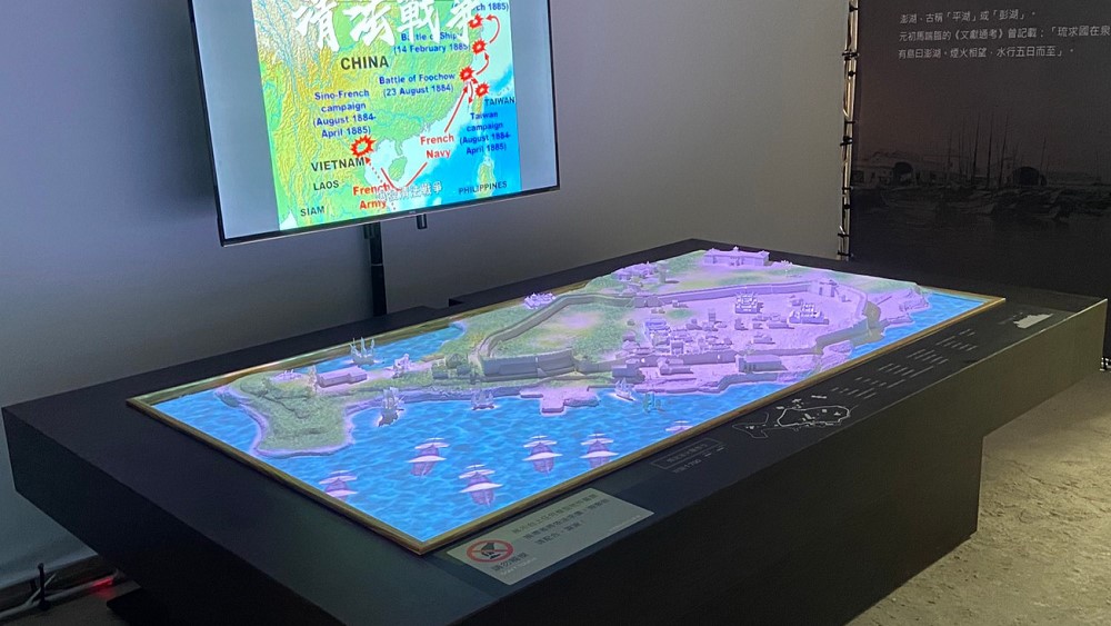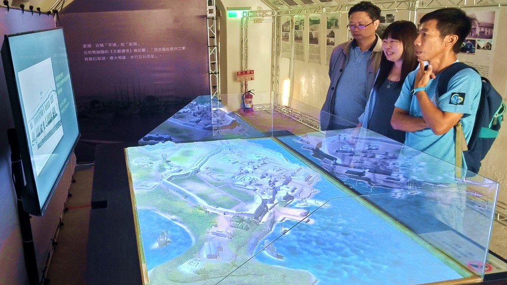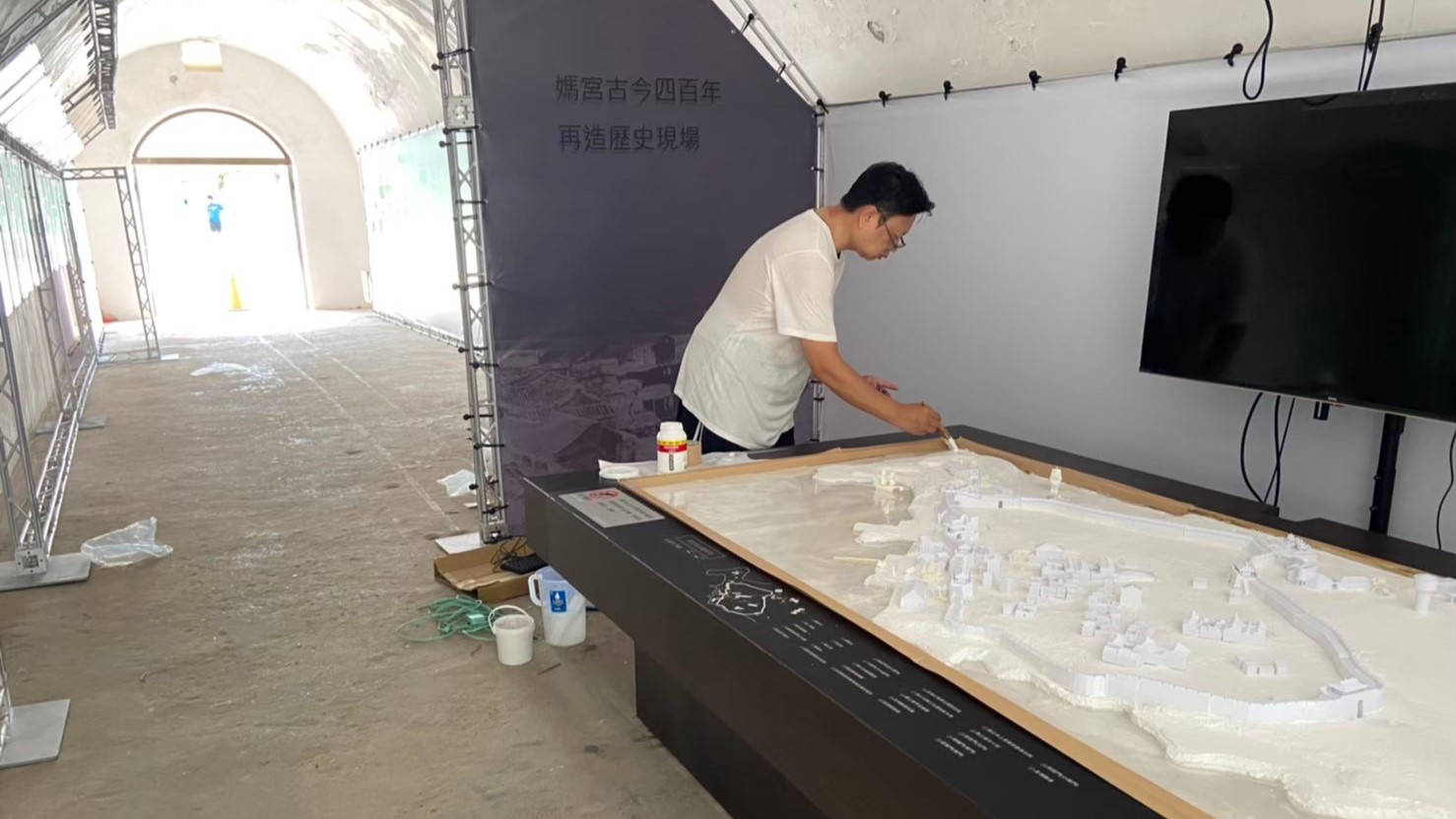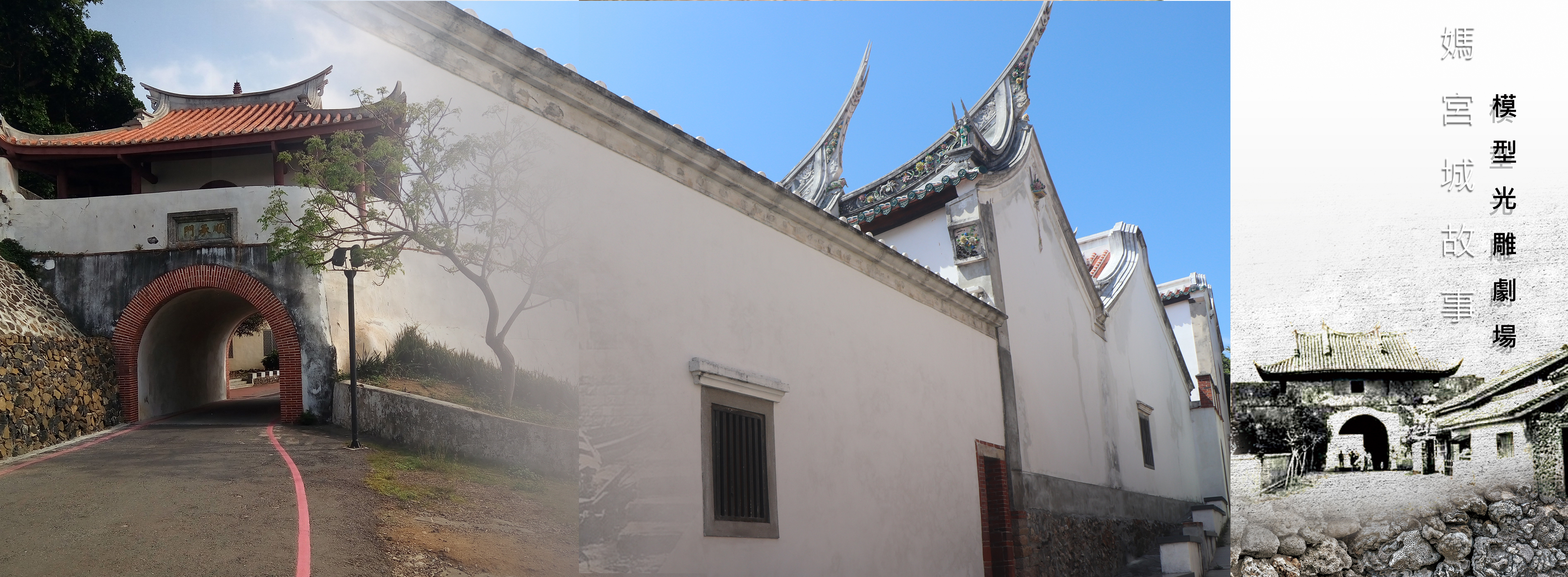 文化部再造歷史現場/澎湖縣政府文化局/澎湖縣媽宮舊城區再造歷史現場數位成果展示/媽宮城故事3D模型AR光雕劇場,依清代媽宮舊城區樣貌及臨近之觀音亭遊憩區、篤行十村、馬公金龜頭礮臺文化園區仿製全區模型,每一式歷史建築模型皆以3D列印,1:300製作。應用數位多媒體光雕投影演繹舊城300年演變歷史,讓民眾體驗時空變換的劇情與樂趣。