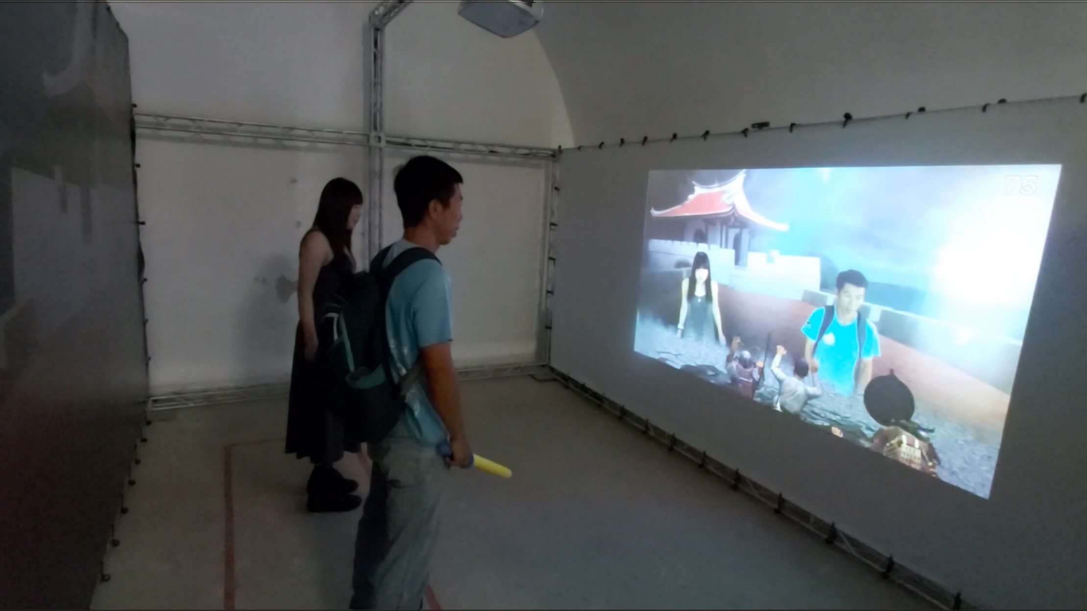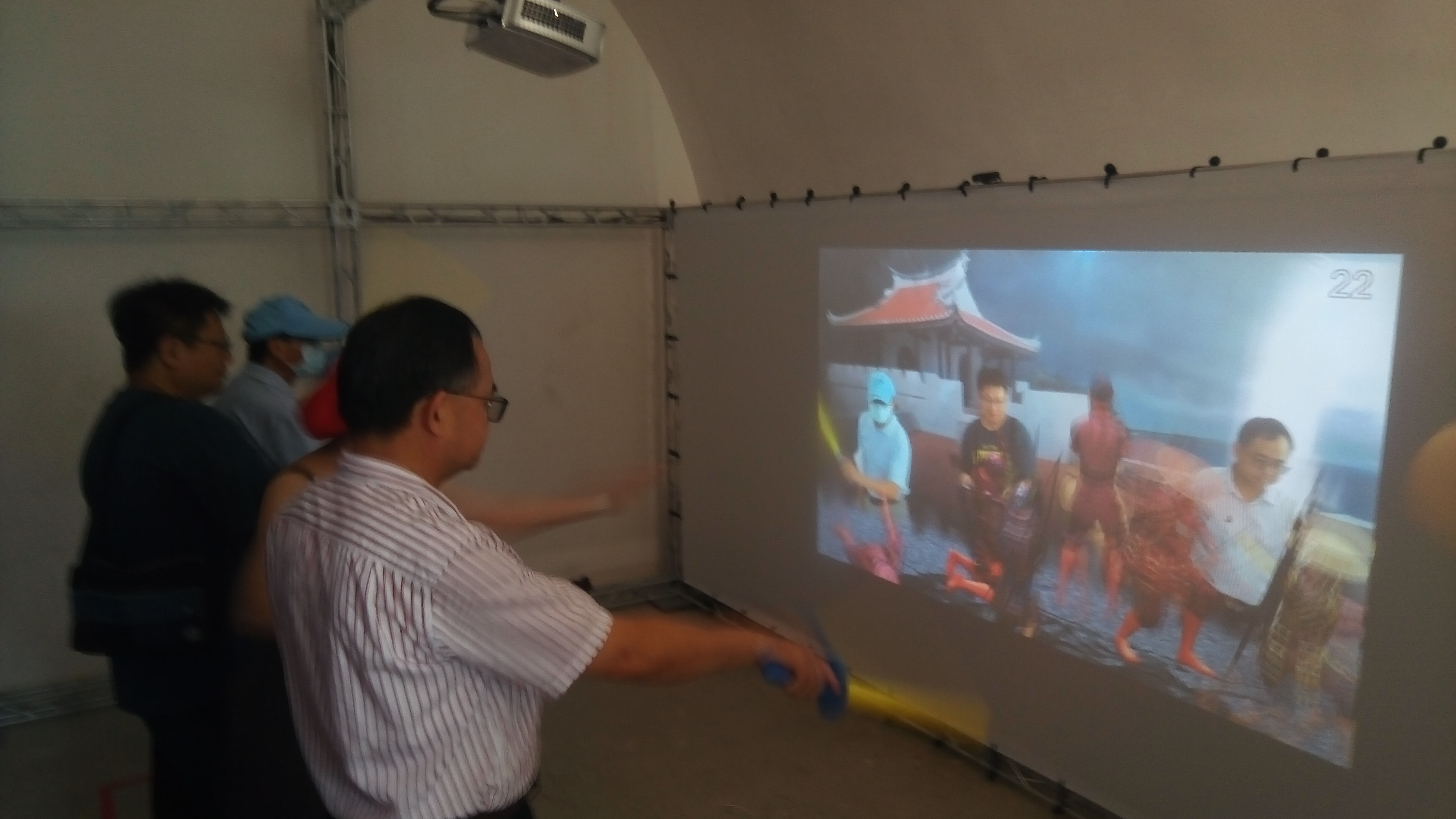 以投影結合AI人像辨識,率先以XR技術表現真人與虛擬角色同在畫面互動遊戲。遊客可以看到自己在投影畫面上奮勇殺賊保衛媽宮城,現場提供軟性泡棉棒,將化身手持兵器與海盜廝殺,在時間內完成任務則出現生力畫面。系統設定劇場自動開啟時段,不須專人站崗服務,AI補捉人體動作,操作直覺易用,可多人一起互助打盜匪,有趣又好玩。